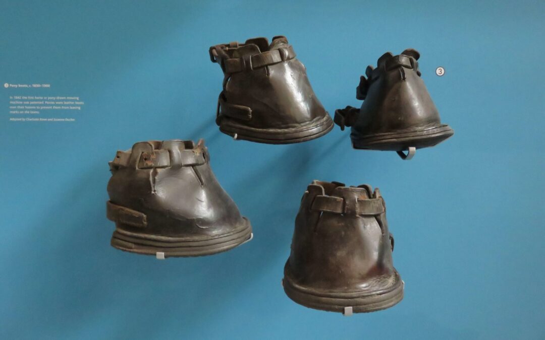 Pony boots prevented marks on the grass and were worn by ponies during mowing