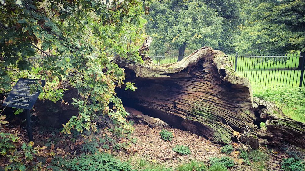 Queen Elizabeth’s Oak ist ein historischer Baum bzw. eher die Reste eines umgestürzten Baums im Greenwich Park. Der Baum wird auf ein Alter von über 800 Jahren geschätzt. Er soll aus der Zeit von William dem Eroberer stammen, was ihn zu einem der ältesten Bäume in London macht. Es handelt sich um eine englische Eiche (Quercus robur), eine Baumart, die in Großbritannien heimisch ist und oft mit Langlebigkeit und Stärke assoziiert wird. Doch was macht einen Baumrest so besonders? Der Baum ist nach Königin Elizabeth I. benannt. Der Legende nach soll sie oft unter dieser Eiche geruht und Picknicks abgehalten haben. Es wird auch berichtet, dass ihr Vater, Heinrich VIII., und seine zweite Ehefrau Anne Boleyn hier Zeit verbracht haben sollen.