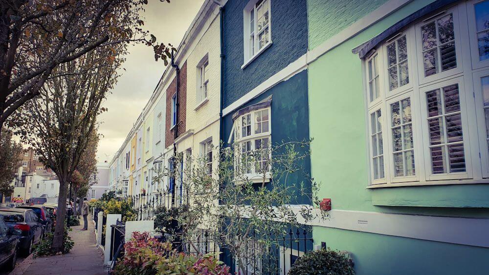 Noch aber kannst du Londons berühmte bunte Häuser bewundern – zum Beispiel hier:
