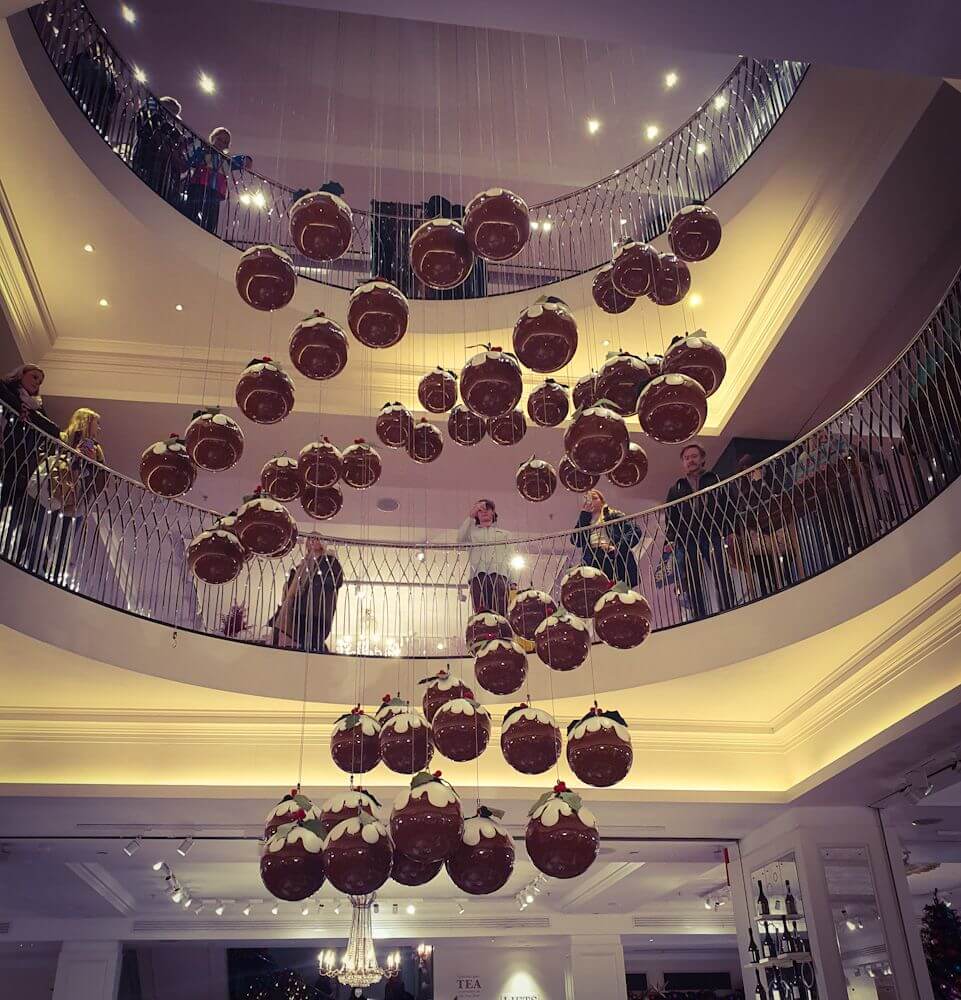 - Hüpfende Christmas Puddings im Treppenhaus von F&M